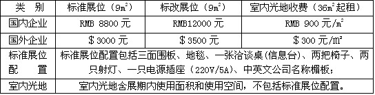 【展位規(guī)格及收費標(biāo)準(zhǔn)】