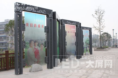 花朝社區(qū)公園的中式屏風戶外公益廣告,與廣場上的中式欄桿、燈柱等融為一體,成為社區(qū)公園的一道新景觀。人和街道廣場現(xiàn)代簡潔的大型led顯示屏,既可全方位傳遞視頻資訊,還極大地豐富市民的文化生活。