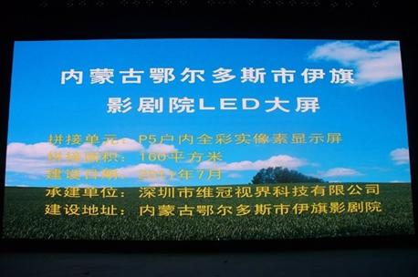 2011年07月、我司特雅麗P5 160㎡室內全彩LED顯示屏在內蒙古鄂爾多斯伊旗影劇院隆重登場,為該影劇院舞臺演出增添不少色彩。
