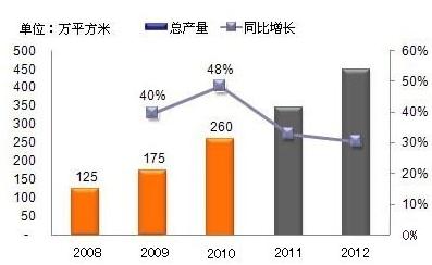 2010年中國led顯示屏總產(chǎn)量260萬平方米,同比增長48%。其中,按生產(chǎn)面積先后順序排列分別為LED全彩屏、LED單色顯示屏、LED雙色顯示屏。三個類別的顯示屏面積差別不大。預(yù)計,2011年LED雙色顯示屏生產(chǎn)面積有望超過LED單色顯示屏。