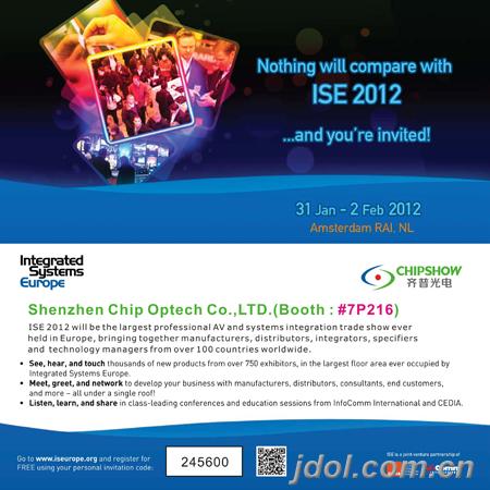 ISE將于2012年1月31日-2月2日在荷蘭阿姆斯特丹RAI展覽館舉行,預(yù)計(jì)將有900家展商和40000名專業(yè)觀眾前去參展。