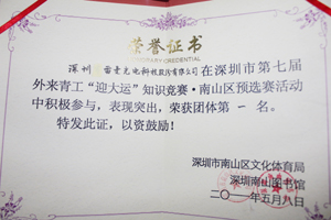 月8日下午,驕陽似火,以“宣傳大運知識、營造全民參與氛圍”為主題的深圳市第七屆外來青工“迎大運”知識競賽•南山區(qū)預(yù)選賽在南山區(qū)圖書館露天廣場舉行,由南山區(qū)圖書館各分館選送的雷曼光電等九支代表隊參加了競賽。此次知識競賽內(nèi)容涉及到大運會競賽知識、大運比賽觀察禮儀等。最終,雷曼光電代表隊以預(yù)賽第一名的好成績代表南山區(qū)參加5月21日的深圳市第七屆外來青工“迎大運”知識競賽總決賽。