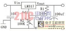 LM317輸出電壓計算,Vout由調節(jié)端的總電阻R和電流I共同決定。其輸出電壓計算公式為: