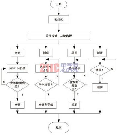 該系統(tǒng)對軟件設計要求高,大部分功能只能由軟件完成。因程序量大,時間有限,采用C語言編程,這樣就大大提高了程序移值性問題,提高了編程效率。編程關鍵點在于微亮掃描與捕捉儲存,如圖8所示。