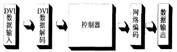 該發(fā)送卡由DVI模塊、FPGA控制器、兩路千兆網(wǎng)輸出模塊構(gòu)成。DVl解碼芯片將解碼得到的數(shù)據(jù)和控制信號傳給FPGA控制器,F(xiàn)PGA通過內(nèi)部的RAM 進(jìn)行緩存,并做了更換時(shí)鐘域和位寬變換的操作,然后將處理后的數(shù)據(jù)通過千兆網(wǎng)輸出。對分辨率1280×1024,刷新頻率為60Hz的實(shí)時(shí)視頻源,這里采用垂直分區(qū)的方法,即將滿屏數(shù)據(jù)平均分成兩路千兆網(wǎng)輸出,每一路千兆傳輸640X 1024,如圖2所示。