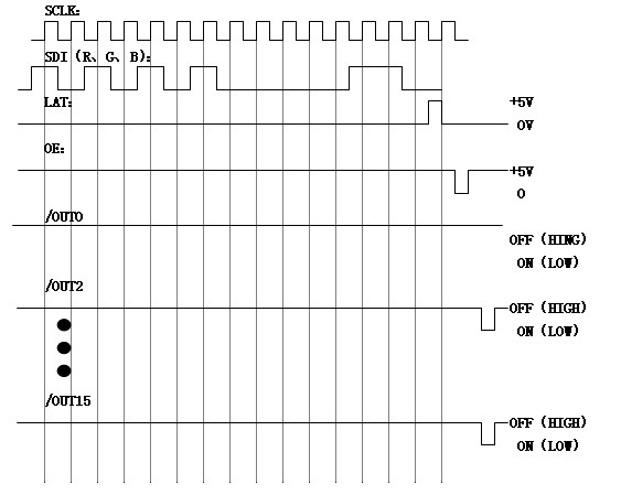 如圖三,每一個LED單管都是獨立可控的,當開關閉合時,電流從行電源,經(jīng)LED,開關到地,從而點亮;開關斷開時,LED熄滅。LED陣列就是由相應的開關陣列(控制器+恒流芯片)控制,控制信號由LED圖像(視頻)控制系統(tǒng)邏輯產(chǎn)生?刂七壿嬕罁(jù)結(jié)構(gòu)定義信號的意義,獨立控制各個LED。開關陣列可以采用各種形式,一般用電子開關(恒流驅(qū)動IC),甚至可以是控制邏輯中的一部分。串行邏輯不但接口簡單,而且容易級聯(lián)(SDI和SDO),組成更大的陣列,所以使用更為廣泛。驅(qū)動模塊的恒流芯片采用串行方式,內(nèi)部設置串行、并行兩組寄存器,通過時鐘SCLK將數(shù)據(jù)串行輸入模塊,通過鎖存信號LAT將串行數(shù)據(jù)存入并行寄存器,同時通過OE使能信號驅(qū)動更新屏體顯示。