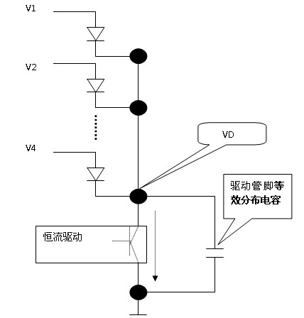 圖三 LED顯示屏動態(tài)1/4掃恒流驅(qū)動通道電流和電壓示意拓撲圖