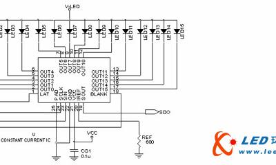 圖像(視頻)信號(hào)通過控制器將控制信號(hào)進(jìn)行串行編碼后,串行圖像數(shù)據(jù)(及SDO)通過恒流IC級(jí)聯(lián)的方式進(jìn)行傳輸分配,恒流IC將串行圖像信號(hào)進(jìn)行串并轉(zhuǎn)換后去驅(qū)動(dòng)LED點(diǎn)陣中的每位LED燈管;LED燈管正端供電電壓正常條件下,恒流驅(qū)動(dòng)IC的輸出通道在有效圖像位驅(qū)動(dòng)信號(hào)的作用下進(jìn)行開啟和關(guān)斷,從而達(dá)到驅(qū)動(dòng)LED點(diǎn)亮和熄滅的功能;恒流驅(qū)動(dòng)IC的電流通過外置電阻REF來調(diào)節(jié),通過改變REF的值來實(shí)現(xiàn)電流大小的調(diào)整。