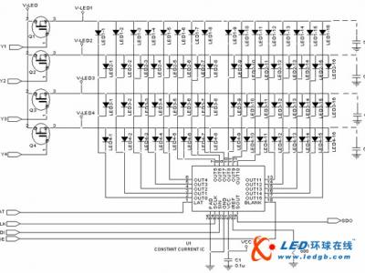 圖二 led顯示屏動(dòng)態(tài)1/4掃恒流驅(qū)動(dòng)電路圖