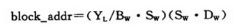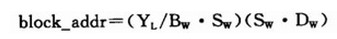 一區(qū)存放有Dw個(gè)顯示數(shù)據(jù),所以YL所在分區(qū)地址與所在塊起始地址之間的相對(duì)偏移地址為(YL%Sw)·Dw。所以,只要知道了顯示信息的起始行坐標(biāo),就能得到顯示數(shù)據(jù)在存儲(chǔ)器中的存儲(chǔ)地址。