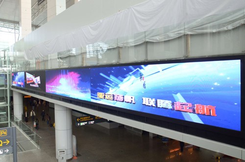 聯(lián)騰科技承制的白云機(jī)場顯示屏,總面積達(dá)303平方米,是目前國內(nèi)面積最大的戶內(nèi)P4高清顯示屏項(xiàng)目,共分為6塊,分別有30.6L×1.89H 和19L×1.89H兩種尺寸,厚度僅為8cm,采用前維護(hù)設(shè)計(jì)更有利于工程安裝。在項(xiàng)目驗(yàn)收過程中,它高清晰和高品質(zhì)的優(yōu)點(diǎn)得到了客戶的高度贊揚(yáng)和認(rèn)可。