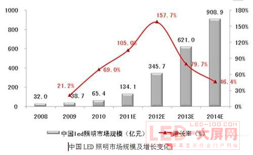 中國(guó)LED照明市場(chǎng)規(guī)模及增長(zhǎng)變化
