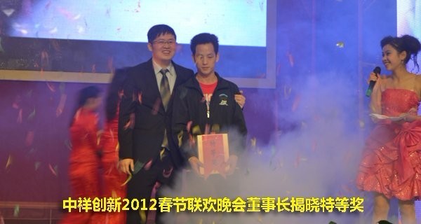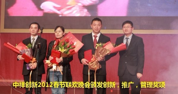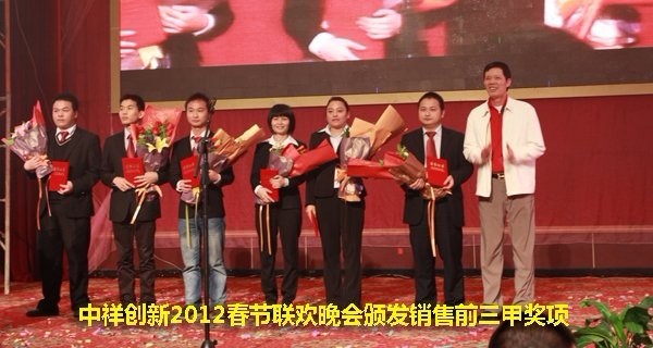 頒發(fā)獎(jiǎng)項(xiàng):2011年中祥創(chuàng)新年度優(yōu)秀員工獎(jiǎng)、2011年中祥創(chuàng)新年度優(yōu)秀部門獎(jiǎng)、2011年中祥創(chuàng)新年度個(gè)人銷售三甲獎(jiǎng)項(xiàng)、2011年中祥創(chuàng)新年度團(tuán)隊(duì)銷售全三甲獎(jiǎng)項(xiàng)、2011年中祥創(chuàng)新技術(shù)創(chuàng)新獎(jiǎng)項(xiàng)、2011年中祥創(chuàng)新規(guī)范化管理獎(jiǎng)項(xiàng)、2011年中祥創(chuàng)新品牌推廣獎(jiǎng)項(xiàng)。
