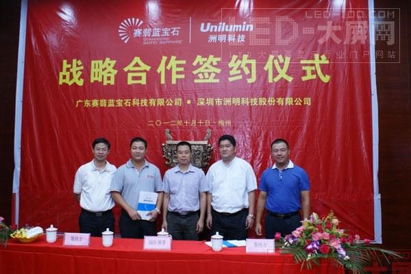 2012年10月10日,深圳市洲明科技股份有限公司與富源集團投資公司--廣東賽翡藍寶石科技有限公司正式簽署戰(zhàn)略合作協(xié)議,為共同推動中國LED的發(fā)展而努力。