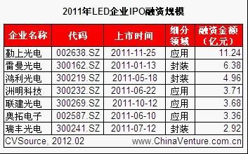 表4 2011年LED企業(yè)IPO融資規(guī)模