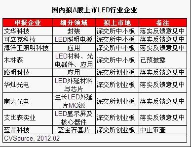 表5 國內(nèi)擬A股上市LED行業(yè)企業(yè)