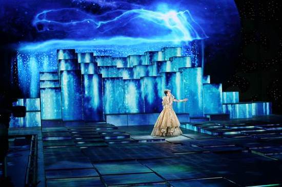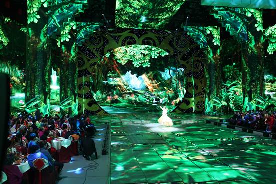 為了呈現(xiàn)出其不意的數(shù)字舞美效果,龍年春晚舞臺(tái)的升降臺(tái)由原來的6塊增加為304塊組合而成,可以進(jìn)行任意的組合搭配。而地面、天棚、舞臺(tái)正面以及兩側(cè),全部設(shè)置為全息LED屏幕。LED燈可以任意上升下降,組合成絢爛唯美的畫面。龍年春晚節(jié)目紛呈,形式多樣,但只有歌舞類節(jié)目可以全方位的發(fā)揮LED屏幕的作用。在歌舞類節(jié)目中,視覺效果最好,讓觀眾印象最深刻的節(jié)目,都是數(shù)虎圖像的扛鼎之作。例如楊麗萍的《雀之戀》,被評(píng)為2012央視春晚最美節(jié)目。