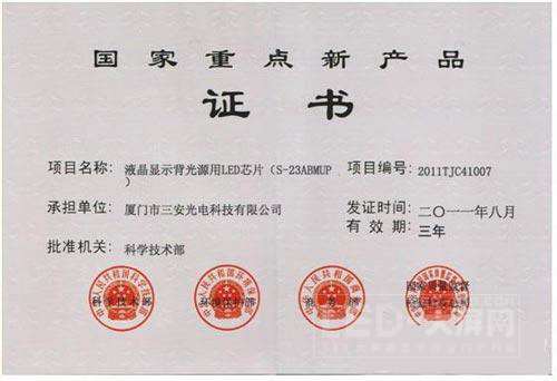 三安光電LED芯片被科技部認(rèn)定為國(guó)家重點(diǎn)新產(chǎn)品