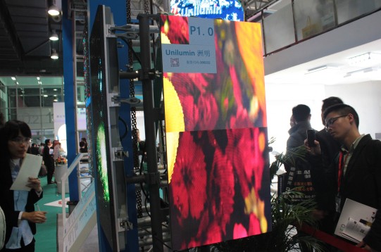 洲明科技UTV系列產(chǎn)品此次亮相,是繼2013年10月新品發(fā)布會后的第一次正式的大規(guī)模面市推廣,據(jù)了解,UTV系列產(chǎn)品將是洲明科技今年主推的產(chǎn)品,也將作為重點的業(yè)績增長點之一。此次展會將UTV1.9、UTV2.5、UTV10.模組以及144寸LED超級電視,其中P1.0模組是業(yè)界首推,因此,引得眾多觀眾駐足觀看、拍照。