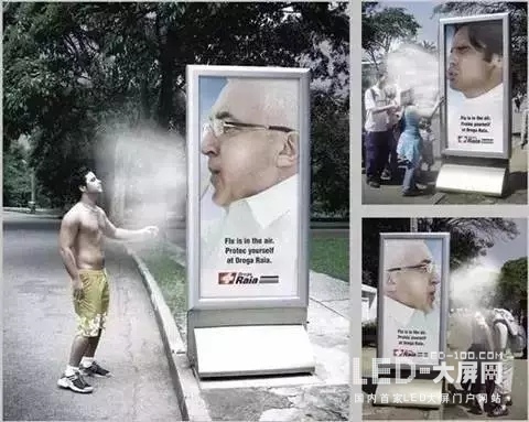 巴西著名藥品連鎖店Droga Raia創(chuàng)作的公益性廣告。通過(guò)在廣告箱里安裝的噴霧設(shè)備和巧妙的視覺(jué)設(shè)計(jì),讓蒸汽像噴嚏一樣噴出。溫馨提示著民眾“流感就在空氣中。保護(hù)好自己”。