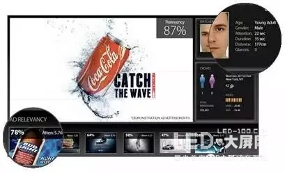 紐約ImmersiveLabs創(chuàng)業(yè)公司在其生產(chǎn)的數(shù)字廣告牌上安裝了一款軟件和網(wǎng)絡(luò)攝像裝置。該廣告牌通過(guò)人臉識(shí)別技術(shù),可以識(shí)別觀看者的體貌特征、看廣告的時(shí)長(zhǎng)等信息。據(jù)此分析消費(fèi)需求,按照匹配的百分比,播放出匹配度最高的廣告。