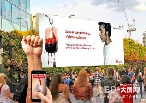 路人通過(guò)使用移動(dòng)設(shè)備連接到網(wǎng)站會(huì)讓屏幕上的血液增多 , 虛擬獻(xiàn)血通過(guò)增強(qiáng)現(xiàn)實(shí)感的活動(dòng)展示了血液捐贈(zèng)之后的轉(zhuǎn)化效果。