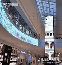 整個(gè)顯示系統(tǒng)中尤為引人注目的是懸掛在購(gòu)物中心中庭的橢圓形LED屏幕,整個(gè)屏幕面積接近100平米,透明度90%。良好的顯示效果使得從購(gòu)物中心各個(gè)角度也能清晰的看到屏幕顯示的內(nèi)容。項(xiàng)目組介紹,這是歐洲最大的橢圓形透明屏。