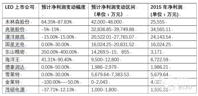 表1:部分LED上市公司2016年度業(yè)績(jī)預(yù)估