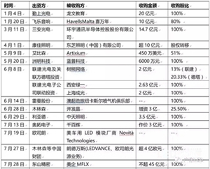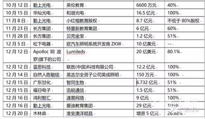 表3:2016年LED業(yè)上市/掛牌公司收購(gòu)列表