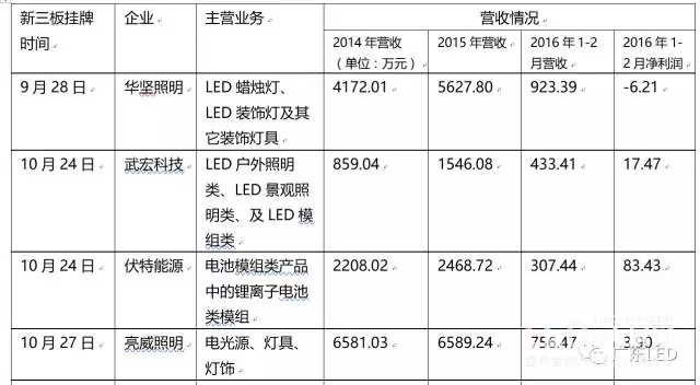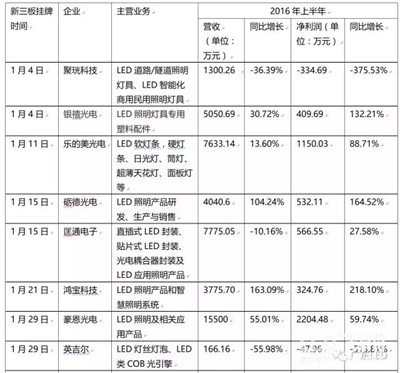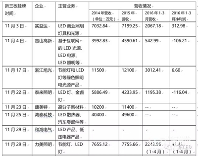 表4:2016年新三板掛牌的LED企業(yè)營(yíng)收情況一覽表
