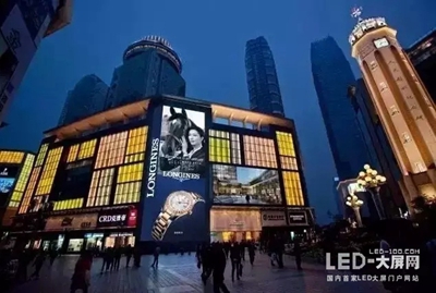 渝中區(qū)解放碑核心CBD商業(yè)大廈外墻面LED屏。