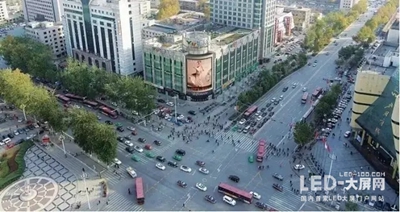 下城區(qū)體育場(chǎng)路與延安路交匯處杭州百貨大廈弧形LED屏。