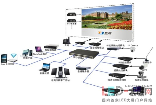 其核心是一套先進的視頻編解碼技術(shù),通過各種信號輸入節(jié)點,將采集到的DVI、VGA、YPbPr、CVBS、3G-SDI等信號進行處理和編碼,通過專用的網(wǎng)絡(luò)通訊協(xié)議,將編碼后的視頻流經(jīng)中心交換機傳輸?shù)捷敵龉?jié)點解碼,并轉(zhuǎn)換為DVI數(shù)字信號輸出到顯示終端。