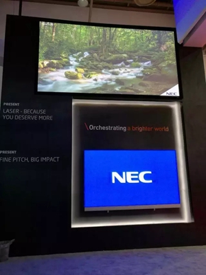 NEC也耐不住寂寞涉足小間距,推出從1.5mm、1.9mm、2.3mm到3.8mm的小間距產(chǎn)品,并以“FINE PITCH,BIG IMPACT”為主題進行展示。