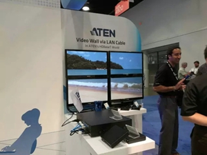 ATEN展示了通過LAN線纜傳輸和控制的視頻墻系統(tǒng)。