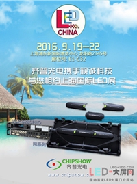 2016年9月19-22日,LED China 展將在上海舉行。齊普光電將攜手視誠科技出席此次行業(yè)盛典。