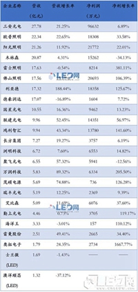 附:24家LED上市企業(yè)營收凈利一覽表