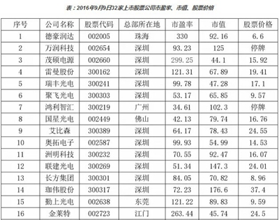 表:2016年9月9日32家上市股票公司市盈率、市值、股票價格