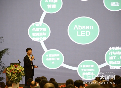 艾比森產(chǎn)品總監(jiān)吳劼先生作《把握機(jī)遇 合作共贏》主題演講,為現(xiàn)場(chǎng)來(lái)賓分享了公司未來(lái)的產(chǎn)品規(guī)劃、定位,將整個(gè)會(huì)議推向新一輪高潮,也讓現(xiàn)場(chǎng)的來(lái)賓們對(duì)艾比森未來(lái)產(chǎn)品的規(guī)劃有了更為清晰的認(rèn)識(shí)。他指出,當(dāng)前LED顯示市場(chǎng)需求多樣化,企業(yè)如何把握機(jī)會(huì)、實(shí)現(xiàn)利潤(rùn)最大化是需要深思的研究課題。艾比森一直堅(jiān)持以產(chǎn)品標(biāo)準(zhǔn)化為主、定制化為輔的方向,用技術(shù)提升產(chǎn)品競(jìng)爭(zhēng)力,解決客戶需求多樣化與供應(yīng)鏈標(biāo)準(zhǔn)化的矛盾,與每一位供應(yīng)商和各企業(yè)深入合作,把握市場(chǎng)機(jī)會(huì),為用戶創(chuàng)造最大的價(jià)值,實(shí)現(xiàn)合作共贏的大愿景。
