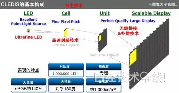 在2016年索尼小間距LED技術(shù)改頭換面以“CLEDIS”技術(shù)形式重出江湖,亮相之后一鳴驚人。據(jù)了解,索尼是從LED元件(芯片)開始制作該產(chǎn)品的,如果從作為起點(diǎn)的LED元件研發(fā)開始算起,意味著該公司花費(fèi)了大約十幾年的時(shí)間才實(shí)現(xiàn)了這款LED顯示器的實(shí)用化。索尼看中的是LED顯示產(chǎn)品對(duì)比度高,視角及色域大,耗電量低等特點(diǎn)。為了降低成本,提高屏幕可靠性,索尼并未采用SMD封裝。而是通過對(duì)多個(gè)像素使用的LED芯片進(jìn)行統(tǒng)一封裝等方法。
