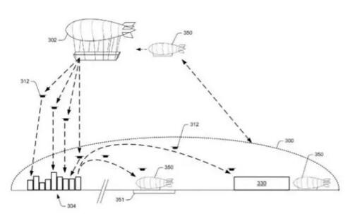 ▲圖注: Amazon無(wú)人機(jī)飛船倉(cāng)儲(chǔ)專利