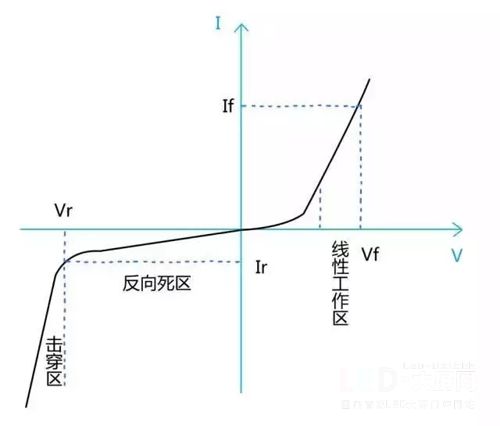 所謂的小電流,是相對常規(guī)戶內(nèi)、戶外芯片試用的電流來說的。如下圖所示的芯片I-V曲線,常規(guī)戶內(nèi)、戶外芯片工作于線性工作區(qū),電流較大。而小間距LED芯片需要工作于靠近0點的非線性工作區(qū),電流偏小!