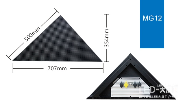 三角屏(MG12)箱體材料為高分子納米材料,較之傳統(tǒng)的鋁合金壓鑄或鋼質(zhì)結(jié)構(gòu),箱體重量大大降低,僅3.6kg。三角屏(MG12)箱體尺寸為707*354*79mm,是一個等腰直角三角形的屏體。