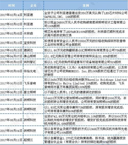 圖表1:2017年以來LED產(chǎn)業(yè)并購情況