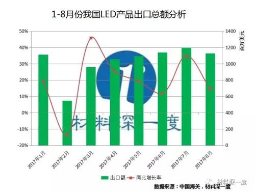 2017年1-8月,我國LED照明產(chǎn)品出口總額達82億美元,同比增長19%。受人民幣升值等因素影響,最近幾個月環(huán)比增速有所減緩,尤其是8月份,首次出現(xiàn)負增長。盡管如此,預計今年出口額也將突破100億美元規(guī)模,有望沖擊120億大關,出口前三大目的地為美國、中國香港、德國。
