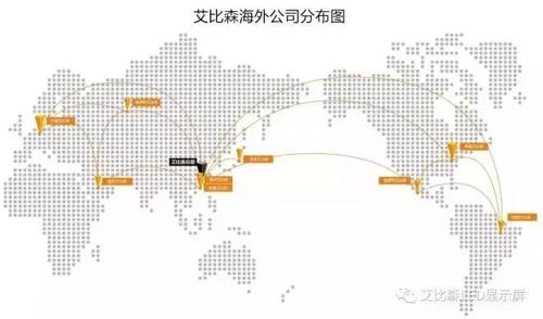 自成立以來,艾比森率先走入國際市場,形成了明顯的國際銷售先發(fā)優(yōu)勢,以香港公司為離岸貿(mào)易中心,在美國和德國分別設(shè)立了倉儲物流中心,在美國、德國、阿聯(lián)酋、俄羅斯、日本、墨西哥、巴西設(shè)立服務(wù)中心,研發(fā)中心/機(jī)構(gòu)遍布美、德、日、韓,產(chǎn)品遠(yuǎn)銷全球120多個國家和地區(qū)。目前,艾比森的辦事機(jī)構(gòu)已進(jìn)駐全球60多座城市,擁有3萬余個商業(yè)項(xiàng)目,形成了以全球各大洲核心城市為中心、輻射全球主要經(jīng)濟(jì)增長區(qū)域的戰(zhàn)略布局。