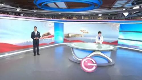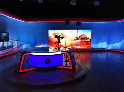黨的十九大海南電視臺演播室(圖中led顯示屏由洲明科技提供)