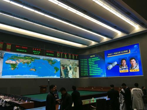 在北京航天飛行控制中心,上海三思提供面積逾200m²的P1.47U型小間距高清LED巨屏,作為天地視頻通話的顯示平臺,承擔了習主席和神舟十一號航天員可視通話的重任,并歷經64天、1536個小時的“零故障”全天候顯示,憑借高可靠性及優(yōu)異的顯示性能,成為中國航天傳奇的參與者與見證者。