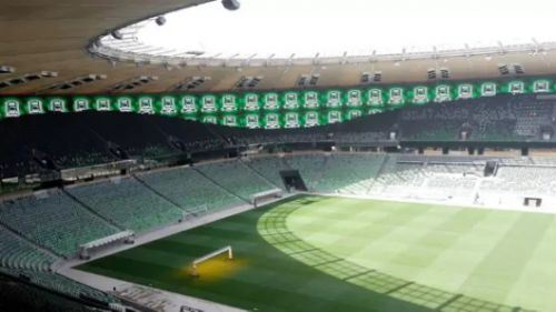 俄羅斯克拉斯諾達(dá)爾球館4800㎡巨型異形屏(圖中LED顯示屏由洲明科技提供)