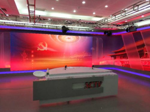 黨的十九大四川衛(wèi)視演播室(圖中led顯示屏由洲明科技提供)
